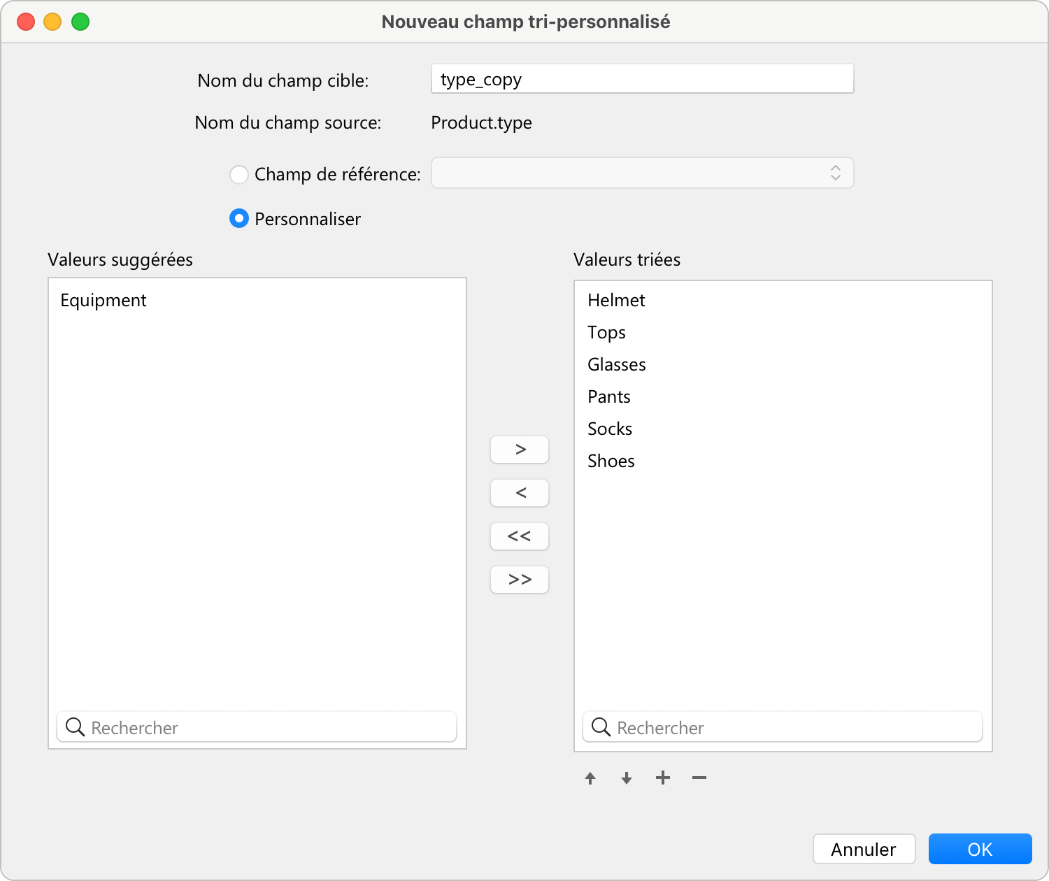 Réorganisez l'ordre des valeurs en fonction d'un autre champ ou d'un ordre personnalisé. Lorsque vous triez ce nouveau champ dans le graphique, il sera trié dans l'ordre que vous avez défini.