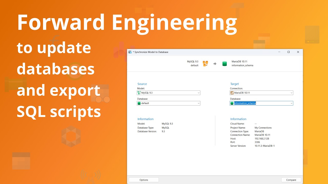 How to use forward engineering to update databases and export SQL scripts?